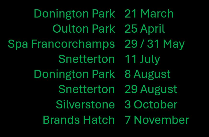 2018 - 2x rounds of British GT, 1x round of Britcar Endurance Championship